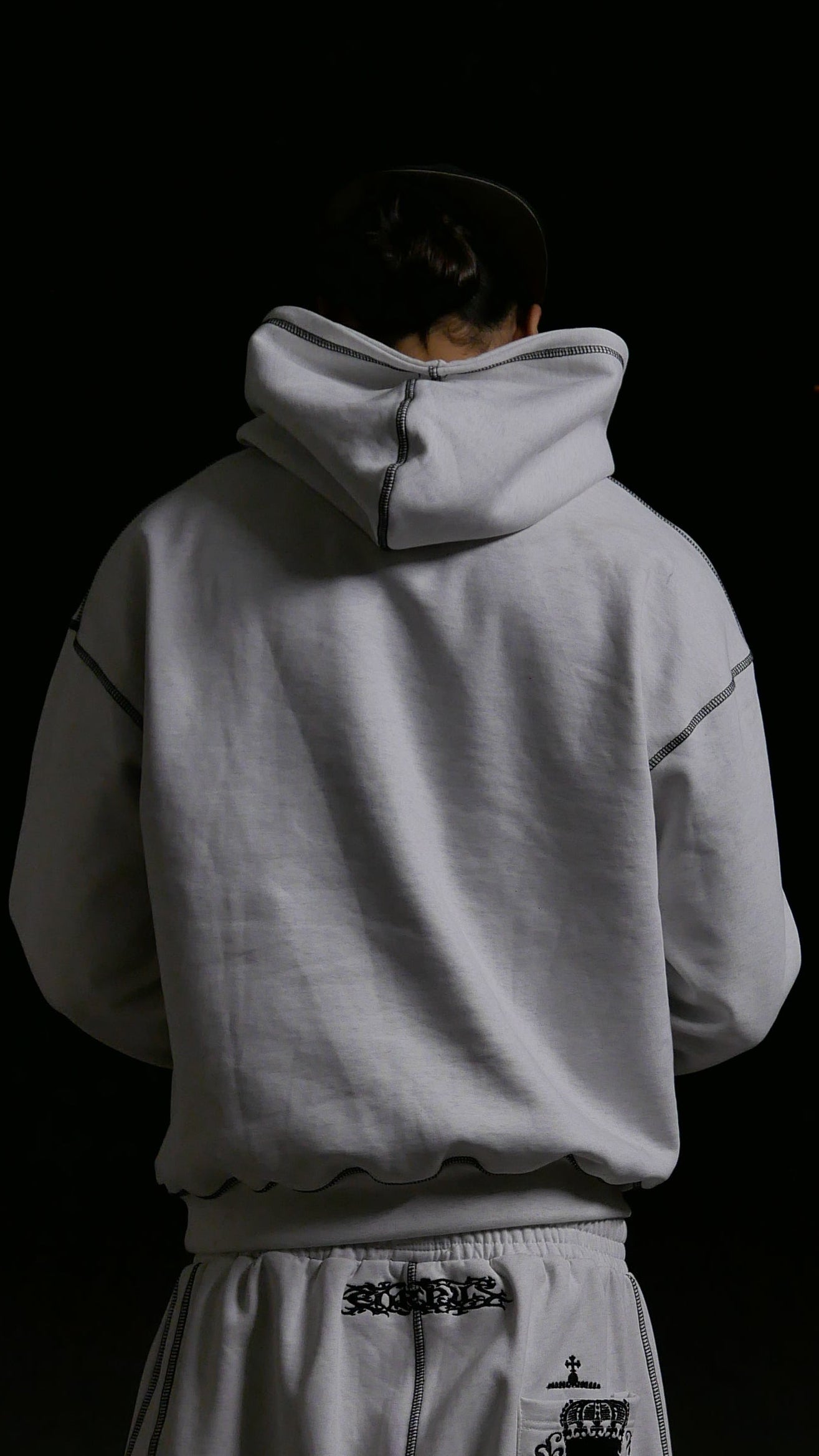 Découvre le Hoodie Grey Corpus, fabriqué dans un tissu gris épais (500GSM) ultra-doux et résistant. Sa coupe droite légèrement oversize apporte un tombé fluide et propre, tout en gardant une structure maîtrisée pour un look streetwear haut de gamme.