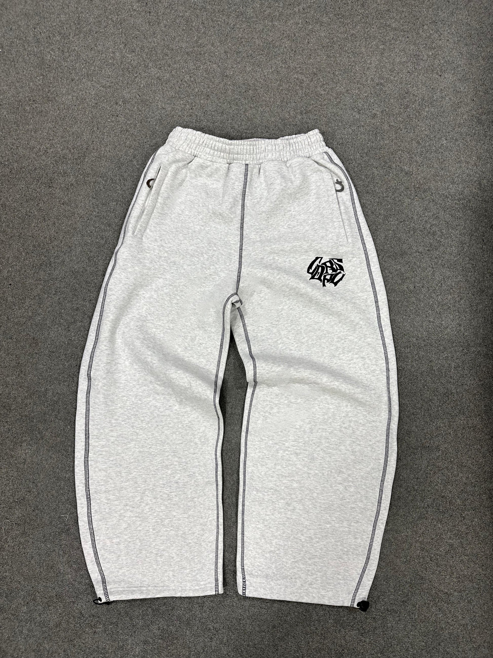 Ce jogging est fabriqué dans un tissu gris épais (500 GSM), doux au toucher et confortable à porter. Sa coupe est droite et un peu ample, pour un tombé fluide sur la jambe.